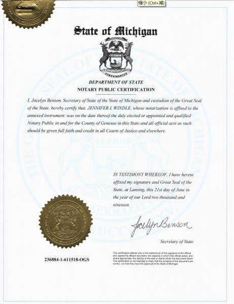 密歇根州 State of Michigan 州务卿公证认证自助办理说明