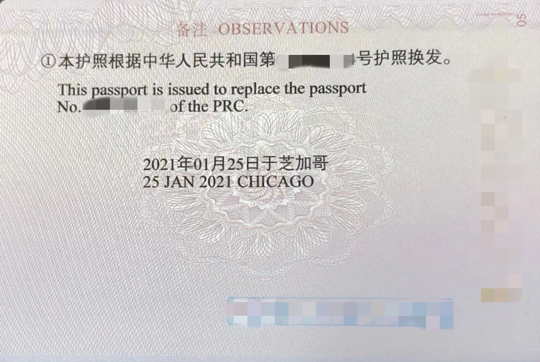 曾办理过加注或延期页(见下图二)上方写有“备注”字样,包含旧护照信息或姓名加注信息等。我们受理时发现,一些申请人漏提供了曾办理加注或延期页的复印件,一些申请多提供了全部空白备注页。