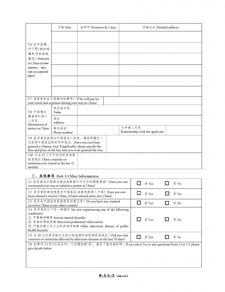 2018年2月26日起,仅洛杉矶领事馆须新表格,其它领事馆用旧表格,只能使用洛杉矶版本的中国签证申请表,其它排版格式的洛杉矶领事馆概不接受!其实签证申请表的内容大同小异,只是表格部分排版不一样,一定得注意,不然白填。
